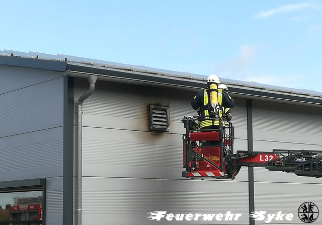 Betroffen war eine Produktionshalle einer ortsansässigen Tischlerei. Im Belüftungssystem einer Laseranlage war es zu einem Brand gekommen. Aufgrund der Komplexität des Gebäudes und der Belüftungsanlage, welche sich auf weitere Teile dieser Halle erstreckt, wurde die Alarmstufe umgehend auf F3 erhöht und somit die Ortsfeuerwehren Barrien, Gessel-Ristedt und Henstedt, die ELO-Gruppe (Einsatzleitung-Ort) der Feuerwehr Stadt Syke, sowie die Hubarbeitsbühne aus Bassum ebenfalls an die Einsatzstelle alarmiert.