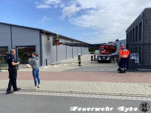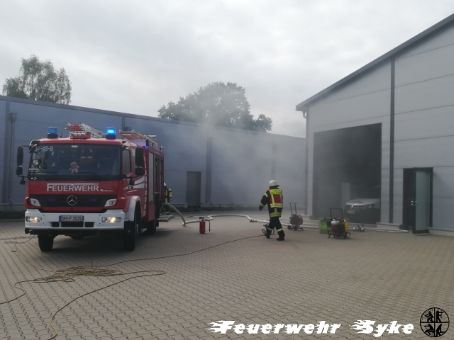 Syke (ts) Die Ortsfeuerwehr Syke wurde am 05.09.2020 gegen 11:20 Uhr mit dem Einsatzstichwort „F2 - Lagerhallenbrand“ in die „Borgwardstraße“, im Syker Industriegebiet, gerufen.
