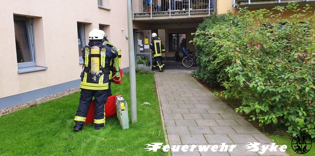 Erste Erkunden ergaben, dass es sich dieses Mal definitiv nicht um einen Fehlalarm handelte, da Rauch in einer Wohneinheit wahrzunehmen war. Zwei Trupps gingen unter Atemschutz zur Brandbekämpfung vor und konnten glücklicherweise feststellen, dass die Rauchentwicklung nur durch eine auf dem eingeschalteten Herd liegende Küchenrolle, sowie Plastikgegenstände hervorgerufen wurde.