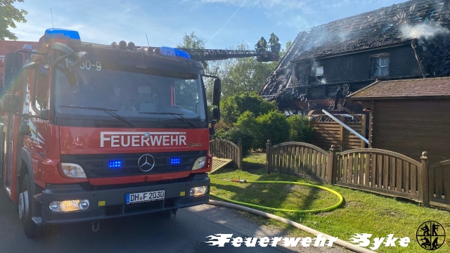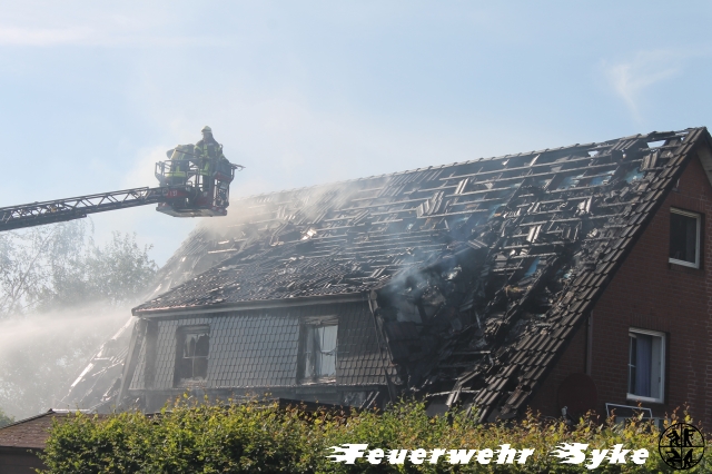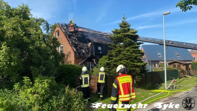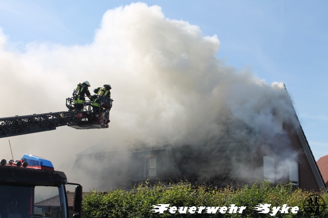 Dank eines massiven Löschangriffs gelang es den Brand auf den Bereich Dachstuhles zu begrenzen, dennoch entstand am Gebäude erheblicher Schaden. Aufgrund der Löschwasserversorgung kam es zu starken Verkehrsbehinderungen auf der Bundesstraße 6. Nach etwa zwei Stunden konnte „Feuer aus“ gemeldet werden und die ca. 150 Feuerwehreinsatzkräfte konnten mit dem Rückbau des Löschangriffs beginnen. Ein Feuerwehrmann kam mit verdacht auf Rauchgasintoxikation in ein umliegendes Krankenhaus. Da die beiden Doppelhaushälften vorübergehend unbewohnbar sind, organisierte der Bereitschaftsdienst der Stadt Syke eine Notunterkunft für die Bewohner.
