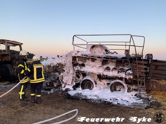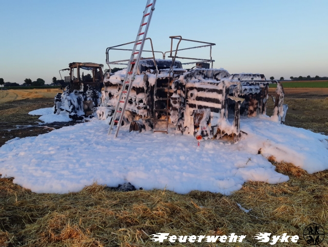 Um 05:20 Uhr wurde die Ortsfeuerwehr Heiligenfelde nochmal zu der Brandstelle alarmiert, da erneut Rauch aus der Presse aufstieg. Mit Löschschaum wurde das gesamte Gespann in einem einstündigen Einsatz von 10 Einsatzkräften erneut abgelöscht.