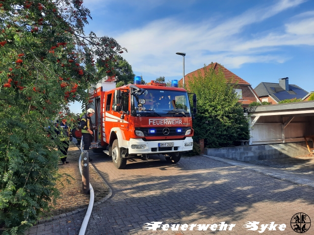 Syke (ts) Die Ortsfeuerwehren Syke, Barrien, Gessel-Ristedt und Henstedt wurden am 24.08.2022 gegen 17:50 Uhr mit dem Einsatzstichwort „Rauchmelder ausgelöst / Wohnungsbrand“ in den Libellenweg alarmiert.