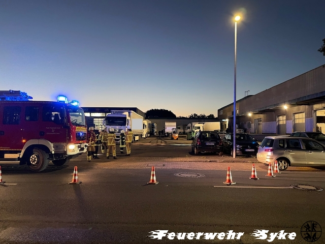 (ct) Heute morgen um 6:27 Uhr wurden die Feuerwehr Stuhr, der Einsatzleitwagen aus Fahrenhorst, sowie die Gefahrgutstaffel Nord aus Syke mit dem Stichwort „Dieselaustritt aus LKW-Fahrzeugtanks – Kraftstoff läuft in Kanalisation“ alarmiert. Vor Ort eingetroffen, wurde als erstes die Lage erkundet. Hier wurde festgestellt, dass viel Kraftstoff ausgetreten war, aber nichts in die Kanalisation lief und kein weiterer Kraftstoff austrat. Die Gefahrgutstaffel konnte ihre Anfahrt daher abbrechen.