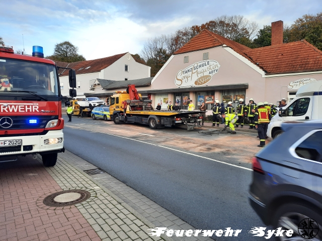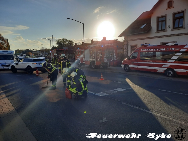 Syke (ts) Die Ortsfeuerwehr Syke wurde am 04.11.2022, gegen 14:55 Uhr, mit dem Einsatzstichwort „T1 - Auslaufende Betriebsstoffe“ zur Abzweigung „Hachedamm / Herrlichkeit“ alarmiert.