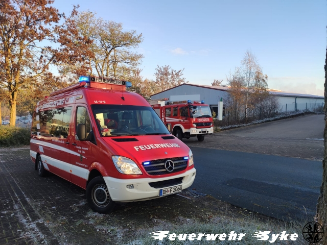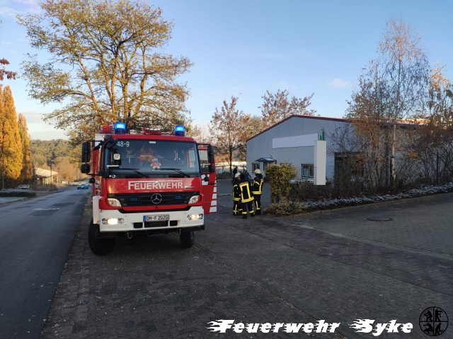 Der Löschzug 8 bestehend aus den Ortsfeuerwehren Syke, Barrien und Henstedt wurde zu einer unklaren Rauchentwicklung in einem Betreib im Syker Industriegebiet alarmiert. Bei der Erkundung durch einen Trupp unter Atemschutz konnte kein Rauch und auch Feuer festgestellt werden. Allerdings war in einer Halle Gasgeruch wahrngenommem worden. Die Gaskonzentration wurde gemessen, es wurde aber keine gefährliche Atmosphäre festgestellt. Der Gashaupthahn wurde geschlossen und der Energieversorger angefordert. Das Wiedereinschalten des Gases und der Elektrik in der Halle wurde untersagt und die Einsatzstelle wurde an den Energieversorger übergeben, als dieser eingetroffen war.