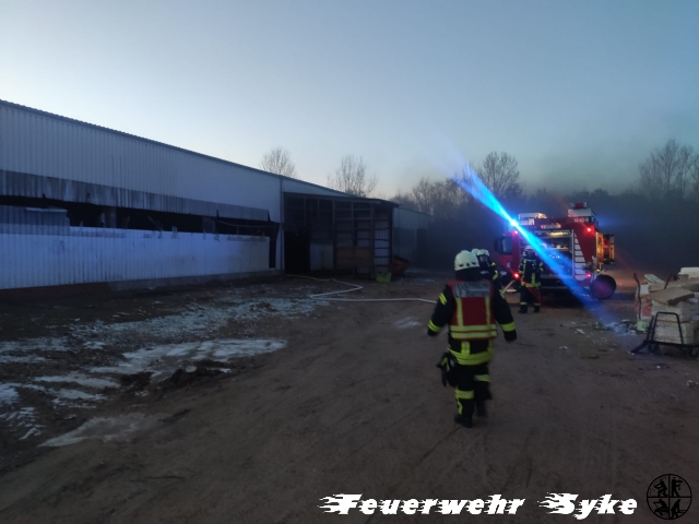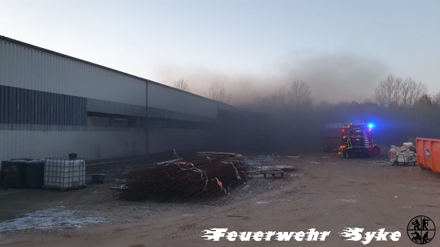 Syke (ts) Die Ortsfeuerwehren Syke, Barrien und Henstedt wurden am 14.12.2022, gegen 16:05 Uhr, mit dem Einsatzstichwort „F2-Rauchentwicklung aus Halle“ in die Straße „Am Ristedter Weg“ alarmiert.