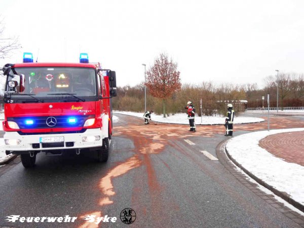 Barrien und Syke zeitgleich über Meldeempfänger zu einer Ölspur gerufen. Der