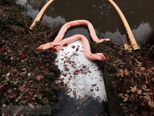 Die Ölsperre im Regenrückhaltebecken am Suurend, die beim Einsatz am 21.10.2014 installiert wurde, ist demontiert worden.
