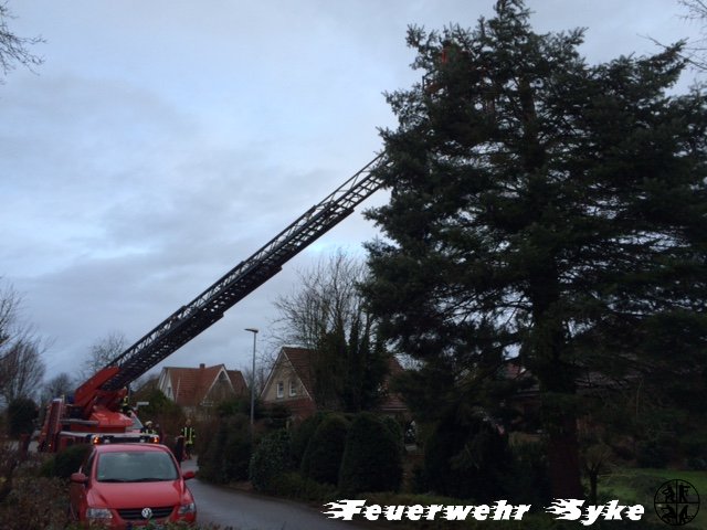 Aus einer großen Tanne war ein dicker Ast aus dem oberen Bereich abgebrochen und herab gefallen. Da weitere Äste aus der Tanne drohten abzubrechen wurde diese komplett gefällt.