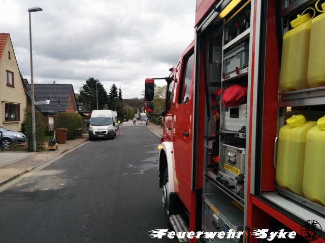 Durch Bauarbeiten wurde eine Gasleitung beschädigt, sodass laut hörbar Gas an der Stelle austrat. Die Einsatzstelle wurde weiträumig abgesperrt und umliegende Gebäude wurden evakuiert. Zwei Trupps unter Atemschutz stellten den Brandschutz sicher und führten Messungen durch. Die Gasleitung wurde durch den Energieversorger abgestellt, sodass kein weiteres Gas mehr ausströmen konnte. Die Messgruppen Nord und Süd wurden ebenfalls alarmiert, wobei die Messgruppe Süd bereits die Anfahrt abbrechen und zum Standort zurückkehren konnte. Nachdem die weiteren Messungen durch die Messgruppe Nord negativ ausgefallen waren, wurde die Absperrung aufgehoben und die Einsatzstelle an den Energieversorger übergeben.
