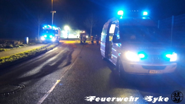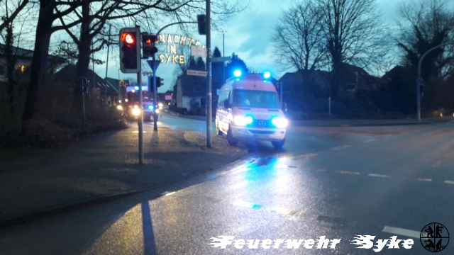 Die Ortsfeuerwehr Syke wurde zum Abstreuen einer Ölspur alarmiert. Die Länge der Ölspur stellte sich jedoch schnell als weitaus größer dar, als nach der Alarmierung zunächst angenommen wurde. Die Ölspur führte von der Kreuzung L340/Gesseler Straße über die Ferdinand-Salfer-Straße, Am Bahnhof, Bahnhofstraße, Gartenstraße, Bassumer Straße bis zur Kreuzung Ernst-Boden-Straße/Sulinger Straße. Die Ölspur hatte eine Gesamtlänge von etwa zwei Kilometern. Insgesamt wurden etwa 1,4 Tonnen Bindemittel ausgebracht um das Öl aufzufangen. Das Bindemittel wurde von einer Fachfirma mit einer Großkehrmaschine aufgenommen und entsorgt. Einige Streckenabschnitte mussten für die Maßnahmen zeitweise vollgesperrt werden.