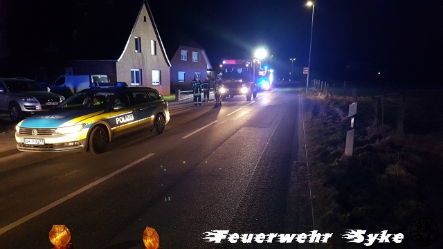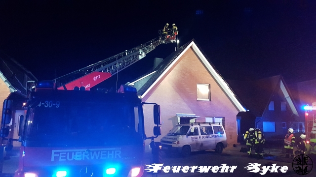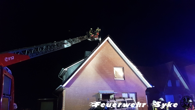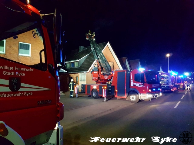 Syke (if) Am Samstag Abend (24.02.2018, 19:50) wurde zunächst die Ortsfeuerwehr Syke zu einem Schornsteinbrand in die Straße „Auf der Heide“ alarmiert. Das Haus wird mit einem Kaminofen beheizt und beim Nachlegen von Brennholz kam es zu einer Verrauchung der Räumlichkeiten und der Schornsteinbrand wurde bemerkt. Die Bewohner brachten sich in Sicherheit und alarmierten die Feuerwehr. Ein Atemschutztrupp ging in den Keller zur Kontrolle der Kaminheizung vor. Als bei der weiteren Kontrolle in den oberen Räumlichkeiten ebenfalls eine Verrauchung festgestellt wurde, wurde die Ortsfeuerwehr Henstedt mit weiteren Atemschutzgeräteträgern sowie ein Schornsteinfeger nachgefordert. Die Kinder und die Mutter konnten sich bei den eisigen Temperaturen im mitalarmierten Rettungswagen aufwärmen, bis die Kinder von der Großmutter abgeholt wurden. Der Vater wurde vom Rettungsdienst kurz untersucht. Es konnte glücklicherweise keine Verletzung bei den Bewohnern festgestellt werden. Die Polizei übernahm die Sperrung der Straße am Kreisel an der Nordwohlder Straße während die Ortsfeuerwehr Henstedt die Straße an der Bassumer Landstraße sperrte. Somit kam es zur Vollsperrung der Straße während der gesamten Einsatzdauer. Die Feuerwehrkräfte räumten den Kaminofen aus und brachten das Brandgut zum Ablöschen vor das Gebäude. Der gesamte Verlauf des Schornsteins durch das Gebäude wurde in Folge immer wieder kontrolliert und Mobiliar vorsorglich abgerückt und in Sicherheit gebracht. Aus dem Korb der Drehleiter wurde der Schornstein von oben mit dem Kehrgeschirr gereinigt und frei gemacht. Der Einsatz konnte erst nach Freigabe durch den Schornsteinfeger um 22:20 Uhr beendet werden. Die zwischenzeitlich gemessene Temperatur von 300°C im Schornstein wurde durch den Einsatz eines Elektrolüfters mit Frischluft auf unter 50°C heruntergekühlt, bevor die 35 Feuerwehrkräfte die Heimfahrt antreten konnten.