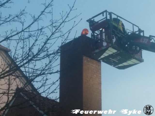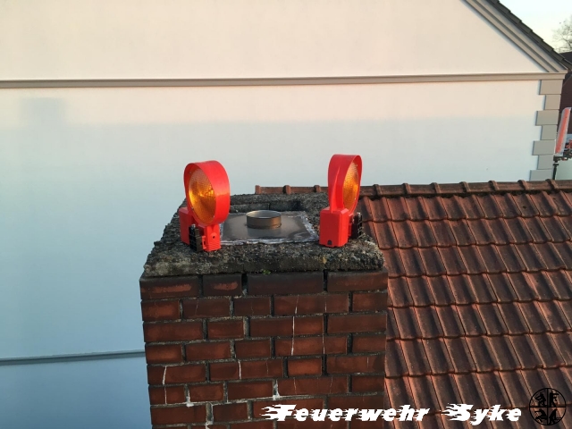 Die Ortsfeuerwehr Syke wurde von der Polizei zur Unterstützung angefordert. Unbekannte hatten Absperrmaterial von einer Baustelle entwendet und auf einem Schornstein platziert. Mit Hilfe der Drehleiter wurden die Gegenstände vom Schornstein entfernt, sodass keine Gefahr durch Herabfallen mehr bestand.