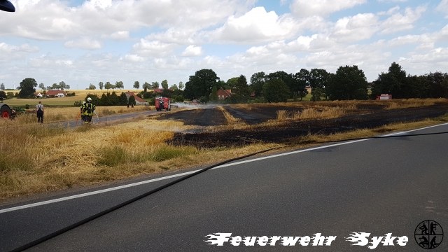 Ebenfalls vor Ort waren der Rettungsdienst und die Polizei. Die Friedeholzstraße wurde für die Dauer des Einsatzes komplett gesperrt. Personen kamen nicht zu Schaden. Im Einsatz waren 60 Einsatzkräfte aus 8 Ortsfeuerwehren (Gödestorf, Wachendorf, Okel, Heiligenfelde, Jardinghausen, Henstedt, Syke und Süstedt, sowie die ELO-Gruppe aus Syke). Die ersten Kräfte konnten nach einer halben Stunde entlassen werden, als das Feuer unter Kontrolle war. Gegen 14 Uhr war der Einsatz beendet. Angaben zur Brandursache und Schadenshöhe können nicht gemacht werden.