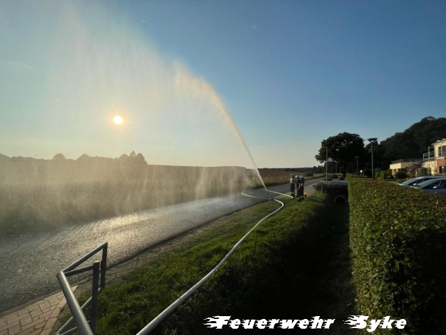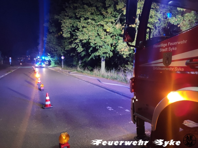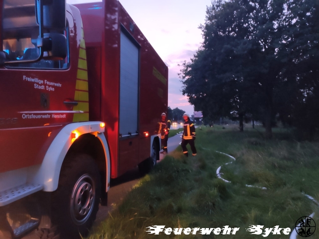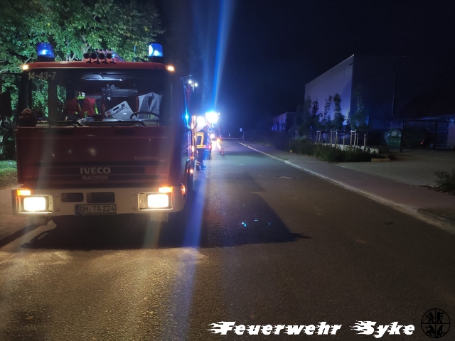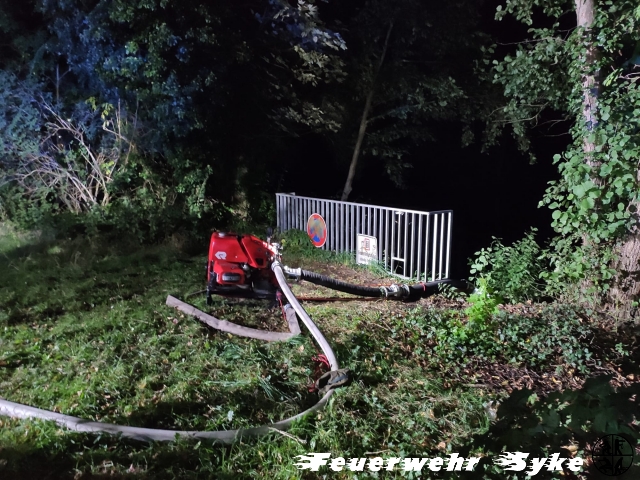 Zuvor hatte es ein starkes Regenschauer gegeben, welches aber, zumindest im Syker Stadtgebiet, nur im Nordwesten zu Feuerwehreinsätzen führte. Innerhalb von zehn Minuten wurde die Ortsfeuerwehr Gessel-Ristedt zu einem vollgelaufenen Keller und die Ortsfeuerwehr Syke zu einer überfluteten Unterführung alarmiert. Als kurz darauf ein weiterer Notruf aus dem Ortsteil Gessel folgte, alarmierte die Leitstelle die Ortsfeuerwehr Barrien zur Unterstützung.