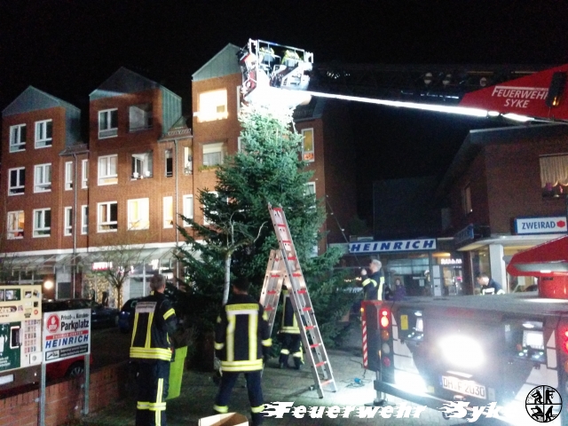 Damit pünktlich zum morgigen ersten Advent auch die Weihnachtsbäume in der Syker Innenstadt hell erleuchtet sind, haben am vergangengen Mittwoch Kameradinnen und Kameraden der Ortsfeuerwehr Syke diese mit Lichterketten geschmückt. Die Ortsfeuerwehr Syke wünscht allen eine schöne und vor allem gesunde Adventszeit.