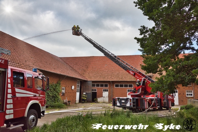 Die zeitgleich laufende Brandbekämpfung wurde durch die Ortsfeuerwehr Syke über ein Hilfeleistungslöschfahrzeug (HLF) und Drehleiter (DLAK) zusammen mit den Kameraden aus Henstedt mit ihrem Tragkraftspritzenfahrzeug Wasser (TSF-W) vorgenommen. Unterstützt wurde die Einsatzleitung ebenfalls durch die ELO-Gruppe (Einsatzleitung Ort) aus Syke. Die bis dahin noch vermissten vier Personen waren inzwischen gerettet und versorgt worden.