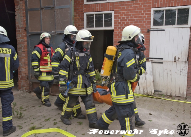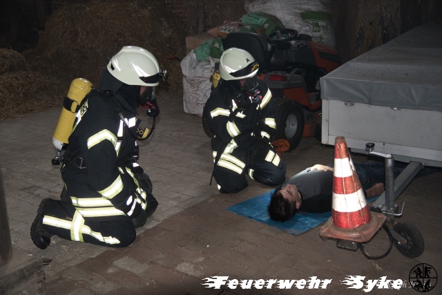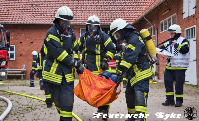 Als erste Wehr traf auf dem Reiterhof die Ortsfeuer Henstedt ein, forderte aber so-fort aufgrund der starken Rauchentwicklung die Unterstützung der Kameraden aus Syke an. Mit mehreren Atemschutztrupps der Henstedter und Syker Einsatzkräfte wurde unverzüglich das komplette Gebäude durchsucht und zunächst sieben Personen gerettet. Zwischendurch wurde festgestellt, dass sich in dem stark verqualm-ten landwirtschaftlichen Anwesen noch mindestens vier weitere Personen befinden, so dass die Suchaktionen erweitert werden musste.