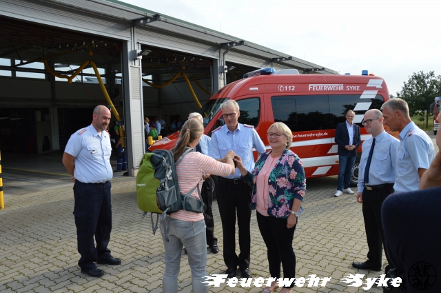 Syke (if) Am Freitag Abend (16.08.2019, 18 Uhr) fand am Syker Feuerwehrhaus die offizielle Übergabe des neuen Mannschaftstransportwagens (kurz MTW) an die Ortsfeuerwehr Syke statt.