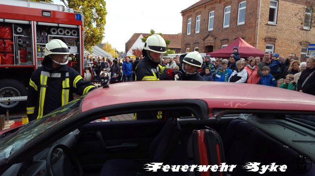 Am 23.06.2016 fand bei wunderschönem Oktoberwetter der Syker Herbstmarkt statt. Unsere Feuerwehr und Jugendfeuerwehr präsentierten sich dabei an der Volksbank.