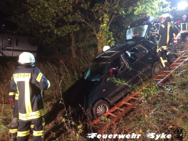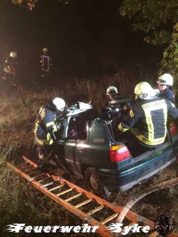 Folgendes Szenario wurde geübt: Ein Fahrer war, nach Einbruch der Dunkelheit, mit seinem Fahrzeug von der Straße abgekommen und eine Böschung hinunter gestürzt.